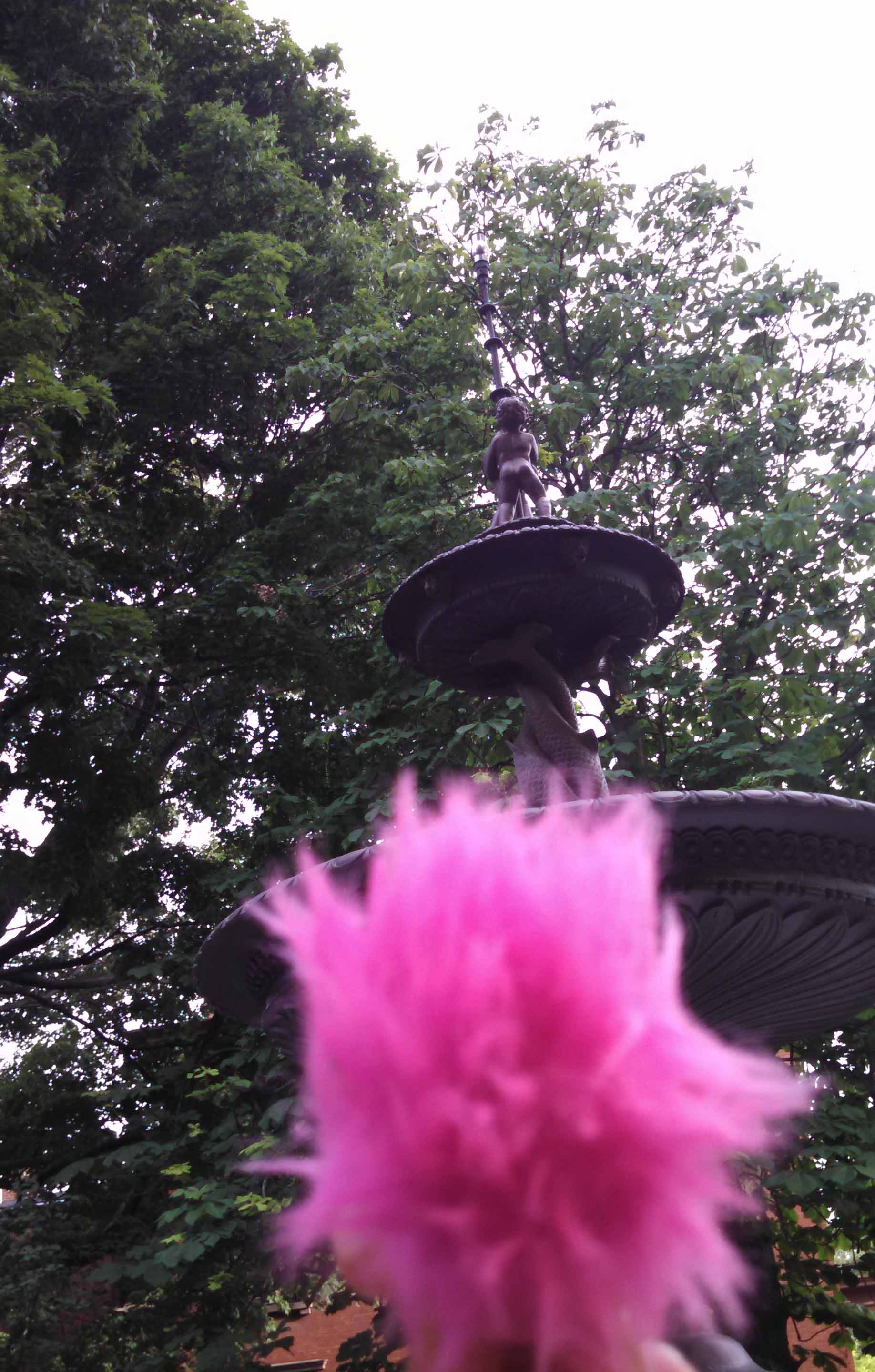 Moonie enjoyed the fountain outside the best. Its statue featured a naked little bum, just like his!