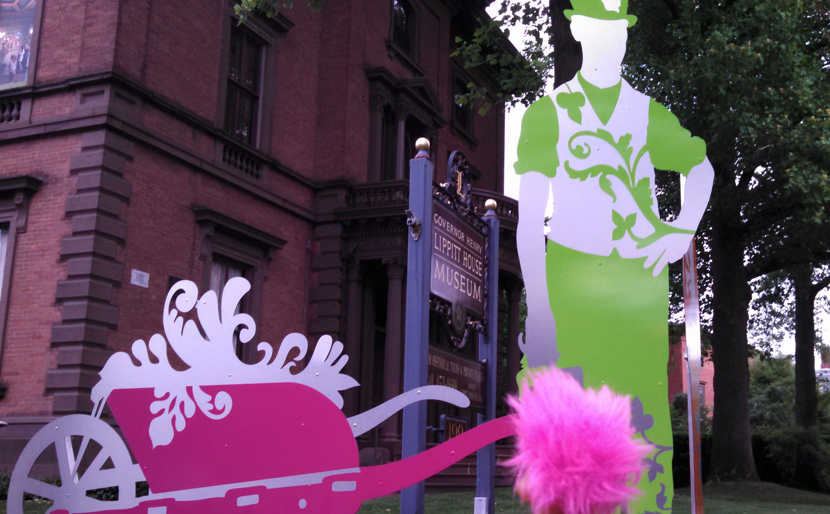 It’s the Lippitt House’s 150th anniversary, and Preserve Rhode Island has been celebrating in several ways leading up to a block party they have planned for June 28th with live music, food, and vendors. These metal sculptures in the yard re part of the anniversary celebration.