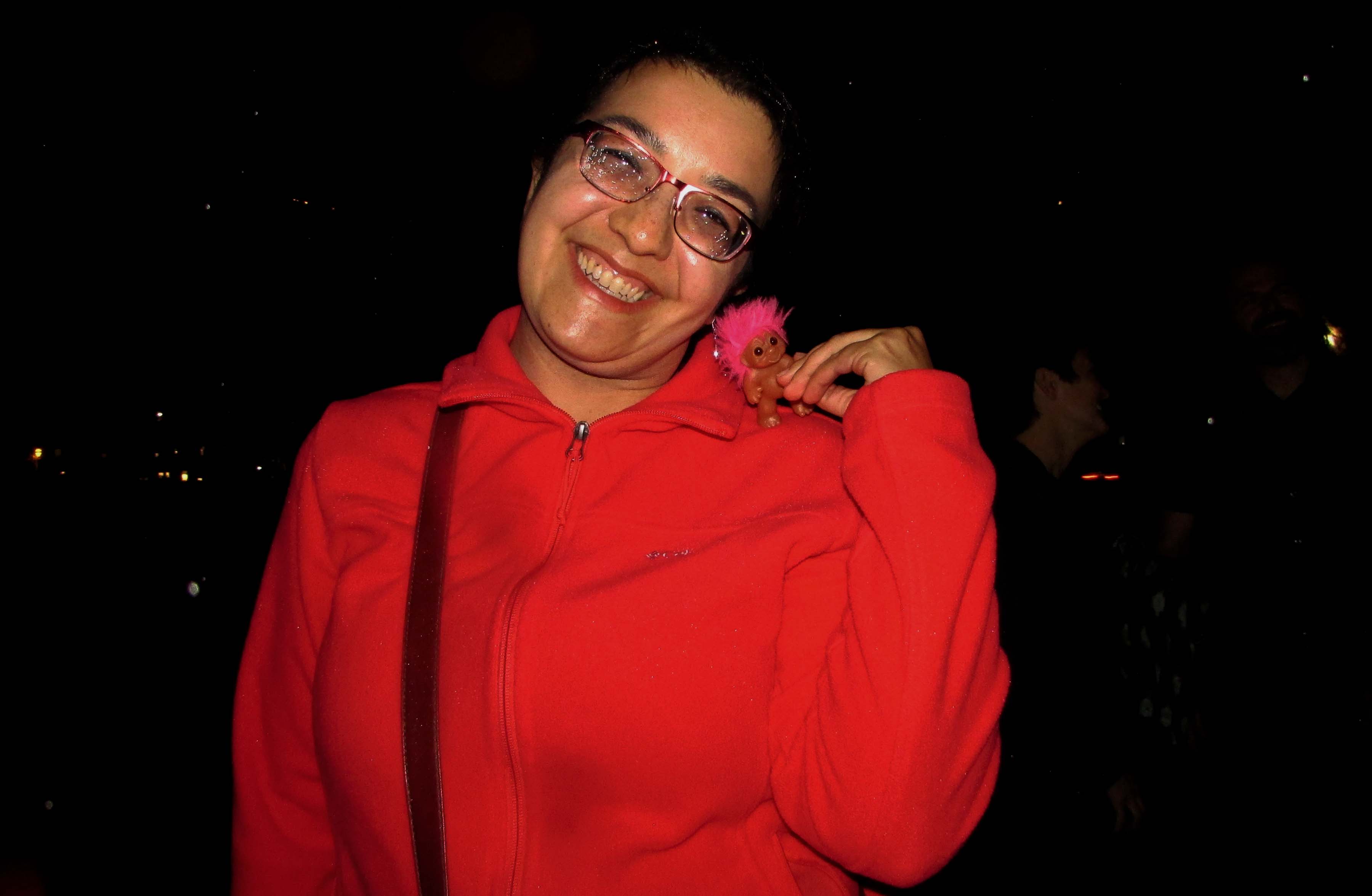 “I think I blinked,” she said when I blinded her with the flash for this photo, “But I don’t think Moonie did.”