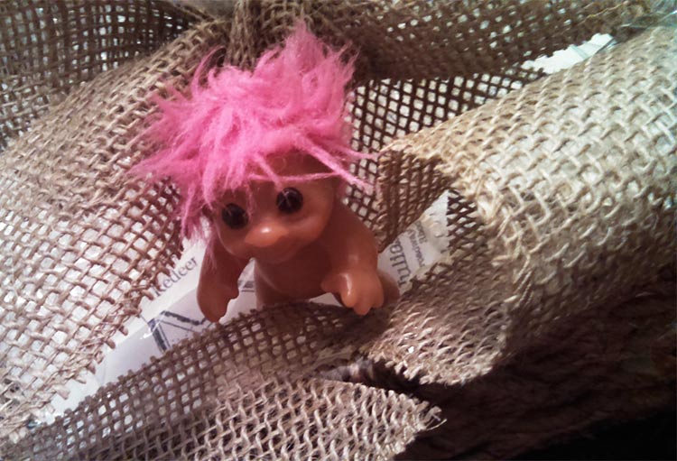 Also, it’s a good thing I won this basket in the silent auction, ’cause I’m not sure how else we were going to untangle Moonie from the ribbon. He seems to have been curling up for a nap and gotten a bit stuck in the bow – sheepish but comfy.