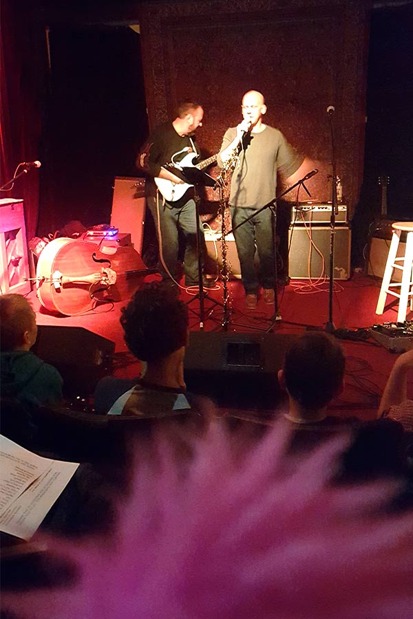 More than 20 different performers were on the bill to sing and play songs by either Elvis Presley or Elvis Costello, as this was an “Elvis vs. Elvis” party. When we arrived, the theatre was already filling up with people excited for the show.