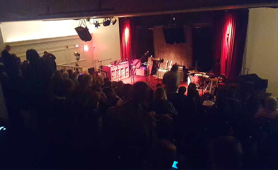 Pat Baron, with John Reddington on drums, followed TCB with a great cover of “Love Me Tender.” It was hard to photograph them with our little camera phone from the back of the theatre, but he was wearing actual blue suede shoes!