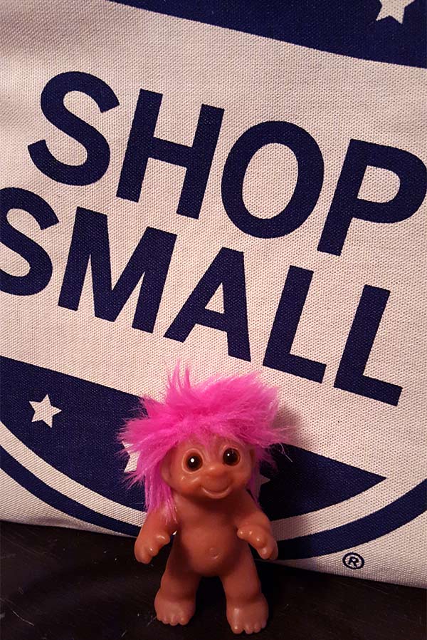 Thanks, Santa and American Express, for our free bag! The message about shopping “small” really resonated with my three-inch-tall sidekick.