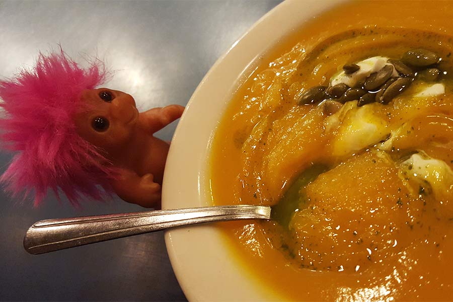 We enjoyed a tasty bowl of butternut squash soup at the AS220 FOO(D) counter – even if Moonie polished off most of it himself.