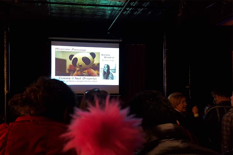 So Moonie was elated about attending Merging Arts Productions’ 9th annual “Short Short Story Film Festival” a few weeks ago. The festival included four screenings – two each of a 17-set of “heartstrings” films and a 17-set of “headtrip” films – followed by a late-night reception, and Moonie was ready to rock.
