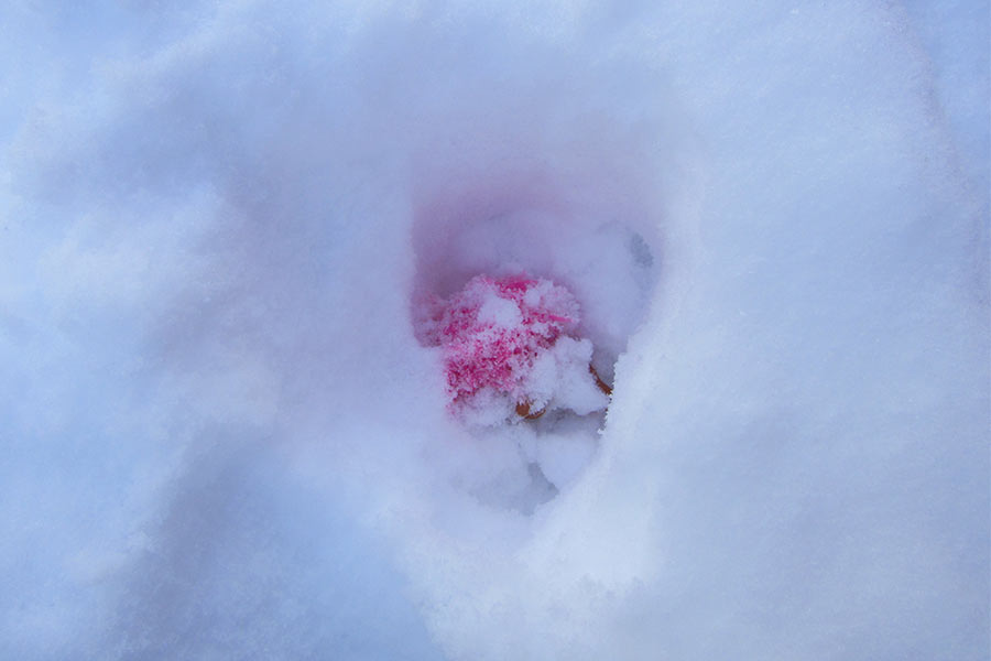 The only problem was when his whole little body would disappear into snow drifts that were many times taller than he. He’d keep on telling jokes, but his voice would suddenly be muffled, and I’d peer down to try and find his shock of pink hair deep in the snow.