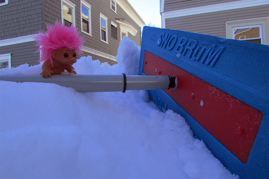 A few years ago my mom had given me a “snow broom,” which is fabulous for pushing snow off your car. It’s also very lightweight, being basically a piece of foam on a stick. Moonie had no trouble wielding the snow broom, and in minutes my car was clear and he was smiling proudly.