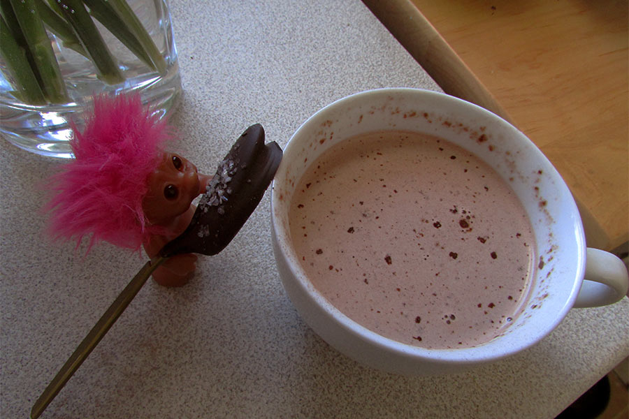 But I did hear his little teeth chattering, and his itty-bitty fingers and toes were looking a little more blue than pink, so I asked if he’d like a cup of hot chocolate.