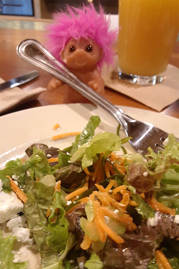 Moonie’s friend Elaine is an annual volunteer at the PCFF, and she invited us to join her a couple of weeks ago at a fundraising night held for the PCFF at Flatbread Providence. Moonie was so excited to be able to both eat and help out a fun cause, he was even happy to dig into a healthy salad!