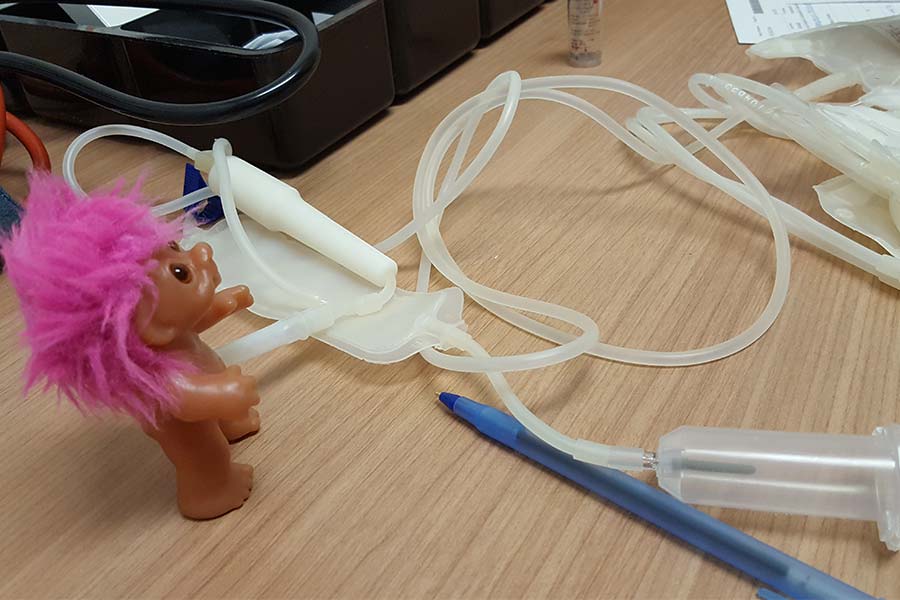Moonie helped untangle the pile of containers for the blood we’d be donating.