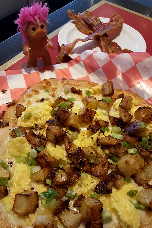 I placed our order for an Elmwood Diner breakfast pizza, which sounded delicious. Debbie asked if that was all.