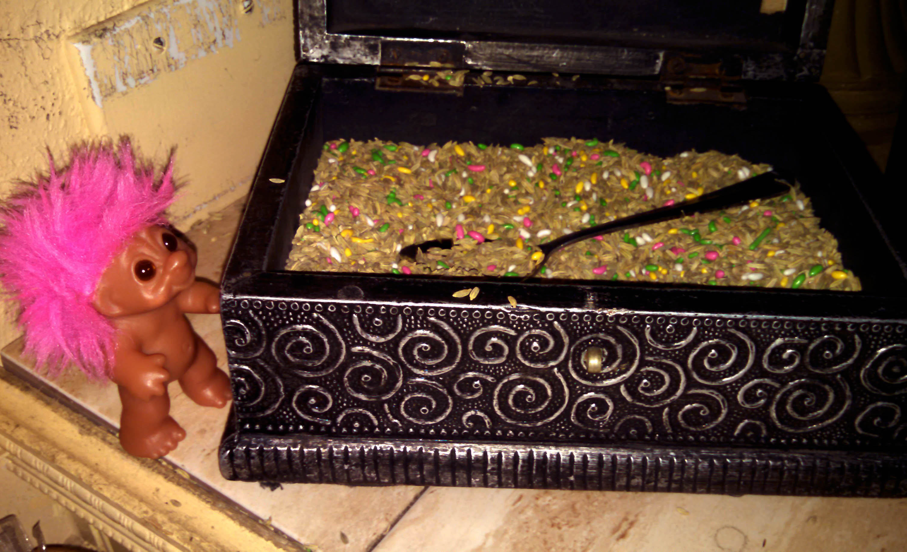 But we didn’t! Because NBP makes some really good slices of New York-style pizza, and because not only Elaine but also our friend Jennifer Jane AND our friend Jake all met up with us, and because it was a Friday and good things seem to happen on Fridays. For Moonie, that good thing happened the moment he saw the pizzaria’s lights. He loooves shiny lights!