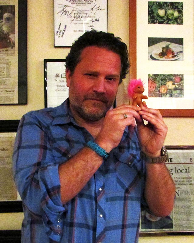 Last night, after enjoying Allysen’s otherworldly music, Moonie got a special treat. Allysen fondly gathered him in her lap along with an array of little candles. As she was wearing a long black dress and as she’d mentioned during her set that someone had accused her (in a good way, there’s a story there) of being a witch, I had to ask, “Are you putting a spell on Moonie? What is it?”
